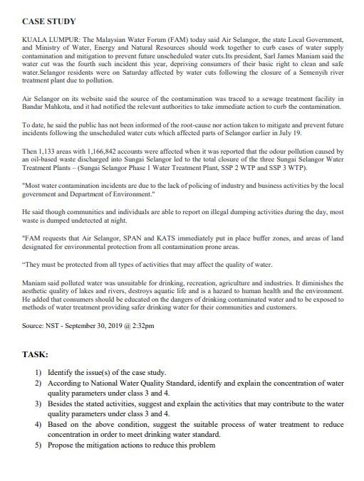 Case Study Kuala Lumpur The Malaysian Water Forum Chegg Com